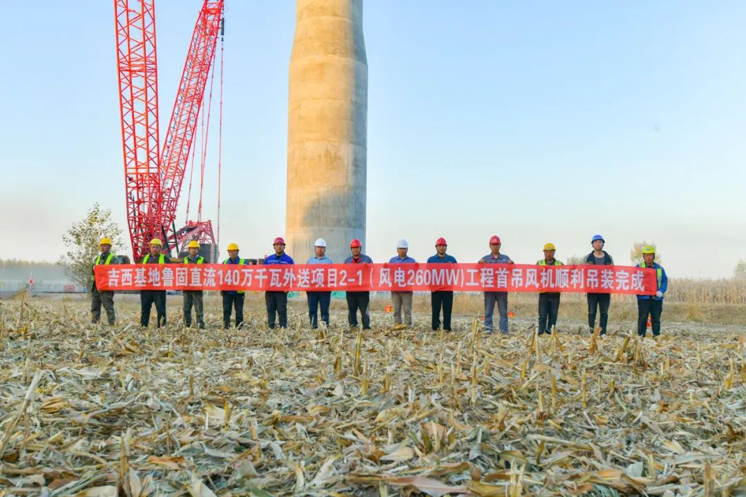 克日,中广核吉林吉西基地鲁固直流140万千瓦外送名目2-1(风电场260MW)工程首吊风机完成吊装。巨力索具60KNM盘车工装和5MW单叶片吊具全程保障其顺遂吊装。