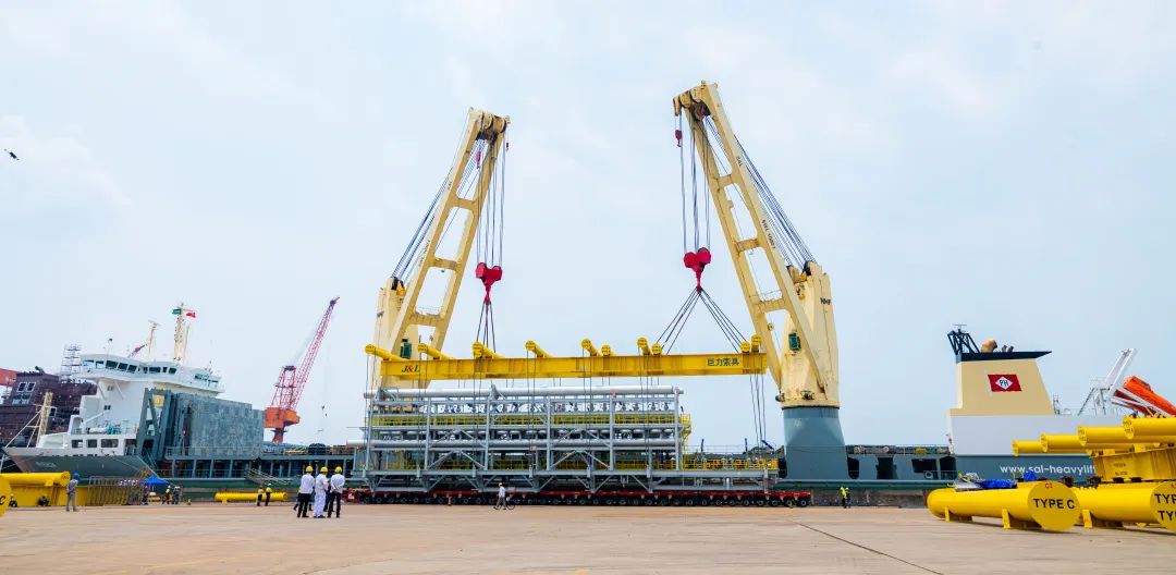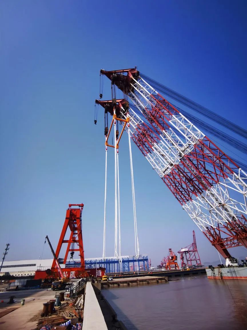克日,青龙门特大桥主塔防撞钢套箱顺遂吊装上船,为下一步钢套箱的全体装置做好了筹办。巨力索具为其供给定制化吊装产物及专业化吊装计划,全部吊装进程宁静有序可控。
