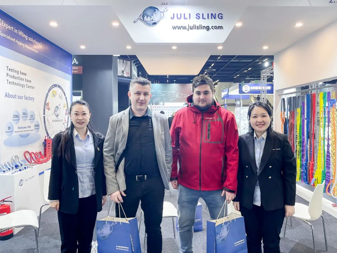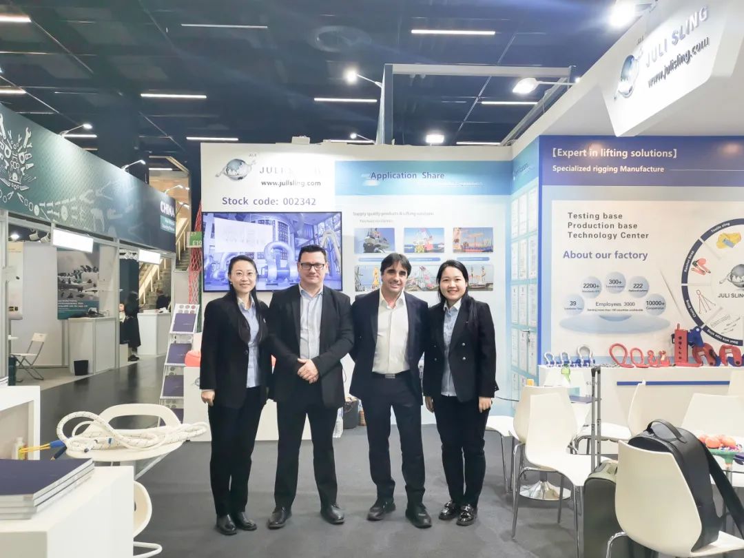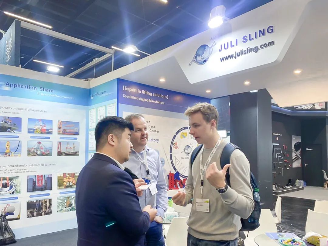 巨力索具这次展会推出的展品以索具及相干五金产物为主,产物涵盖大型卸扣、钢丝绳、钢丝绳子具、吊装带、链条及索具毗连件等一系列高端索具产物。