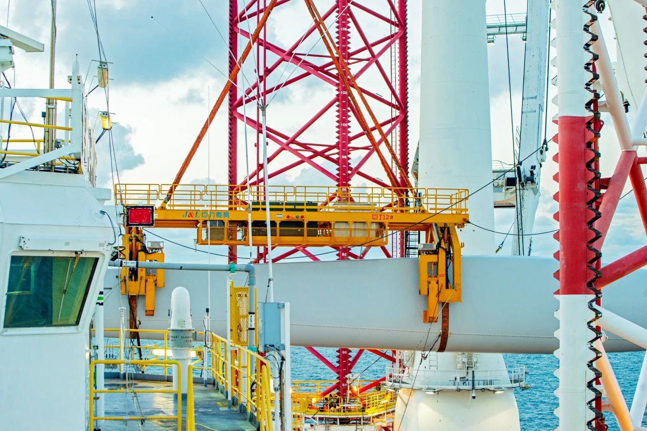 2021年9月16日,汕头某海疆,巨力索具研发的国际首台55吨大兆瓦全角度扭转式海上单叶片吊具,方才面世,便睁开持续功课,顺遂完成5台风机的叶片吊装,承受住了磨练,完善的展现了巨力吊具的高靠得住性、高宁静性及高效力。