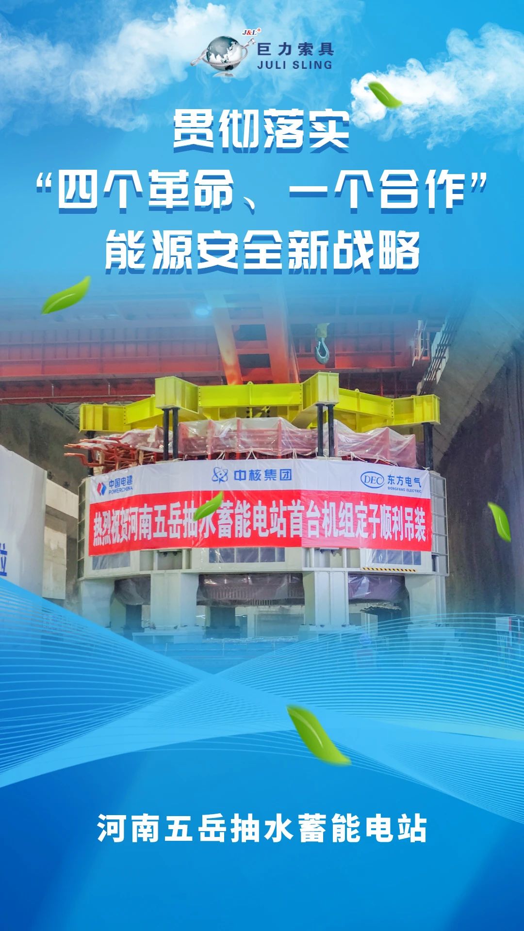 2024年3月27日,中国水电四局承建的河南五岳抽水蓄能电站首台机组定子吊装就位,巨力索具制作的350T定子起吊东西全程保证该名目吊装顺遂停止,巨力索具从名目立项之初就与西方机电手艺研发团队频频优化吊装计划,确保吊具与定子形状尺寸高度符合,吊装情势宁静靠得住。