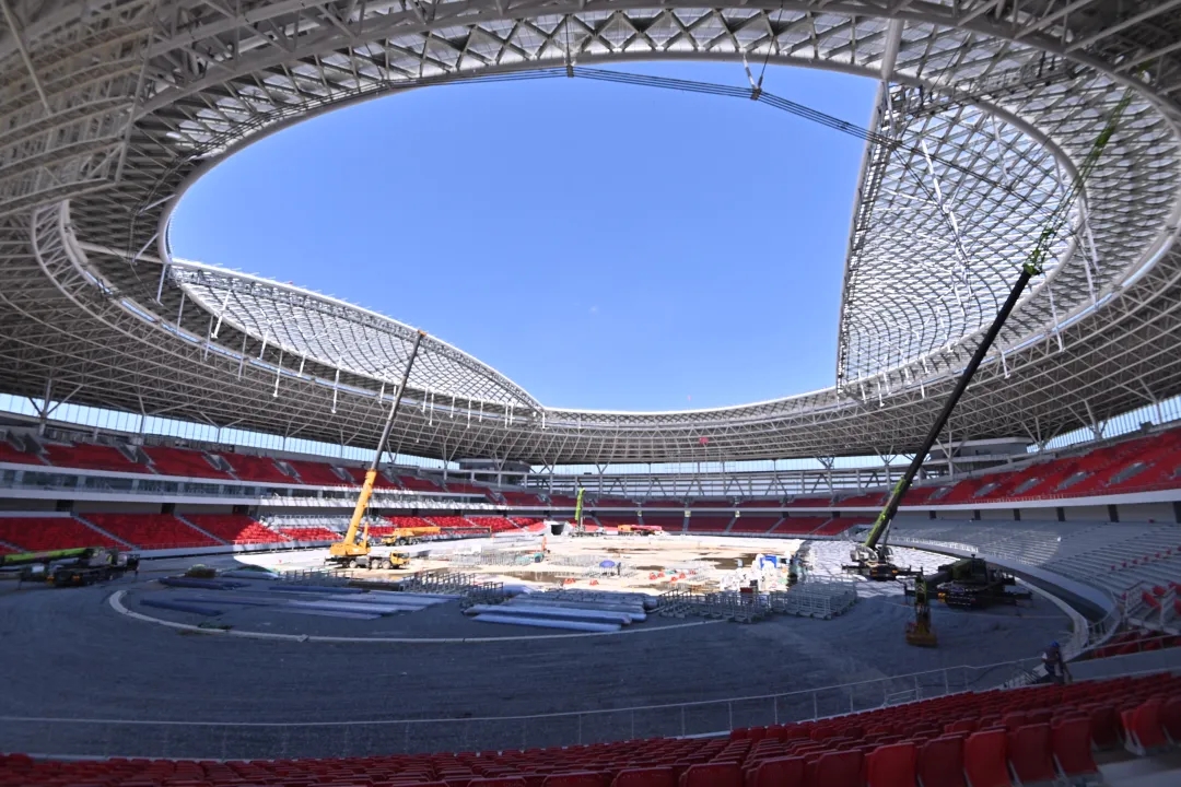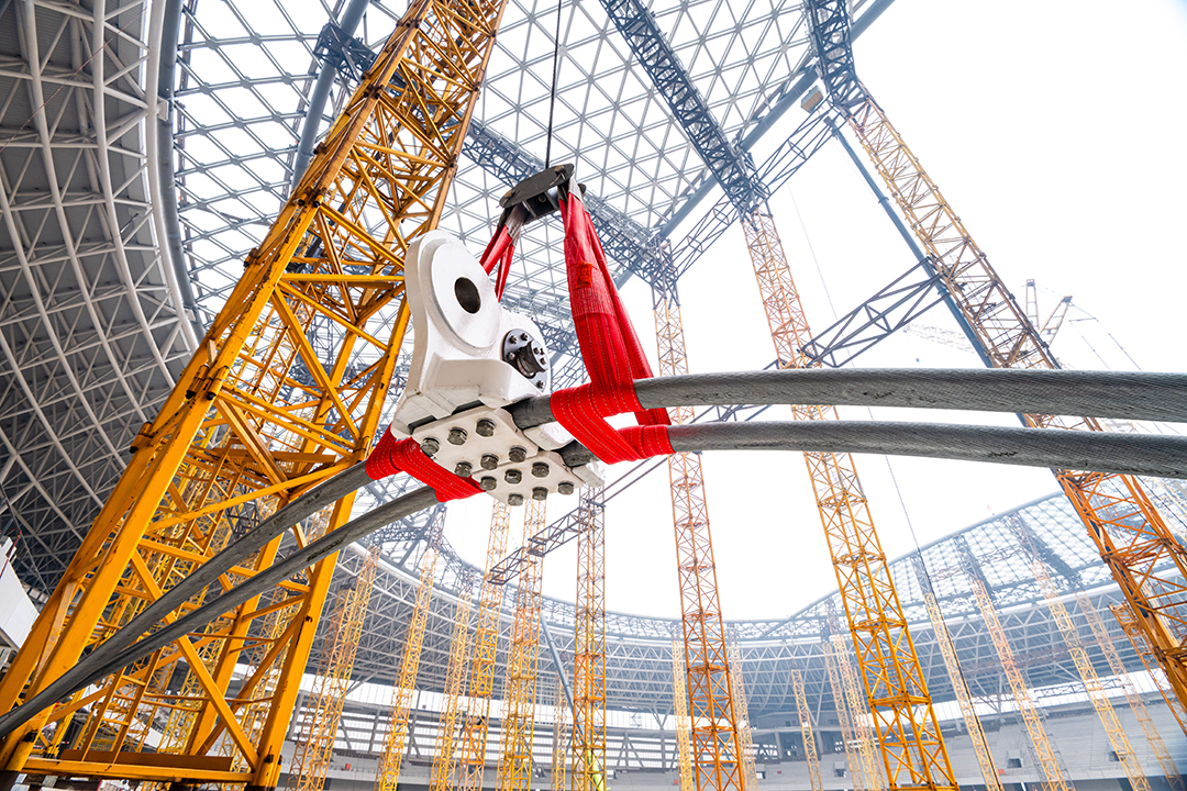 在基础进行建筑铺设任务管理器中,巨力索具对体育用品里面径向索与环梁布位得到了测力销钉学手艺人(提供拉索索力实时监测器数据效果,可顺利达成足球体育运动场基础进行建筑铺设及经营的的时代的索力监测器数据),融会一层网壳与索承张拉学手艺人,4700吨钢行动计划屋盖全体员工吊升,基础进行建筑铺设时在高空制做顺利达成,56半小时厘米级有目的落位,振兴國际足球体育运动文化场所基础进行建筑铺设史籍。