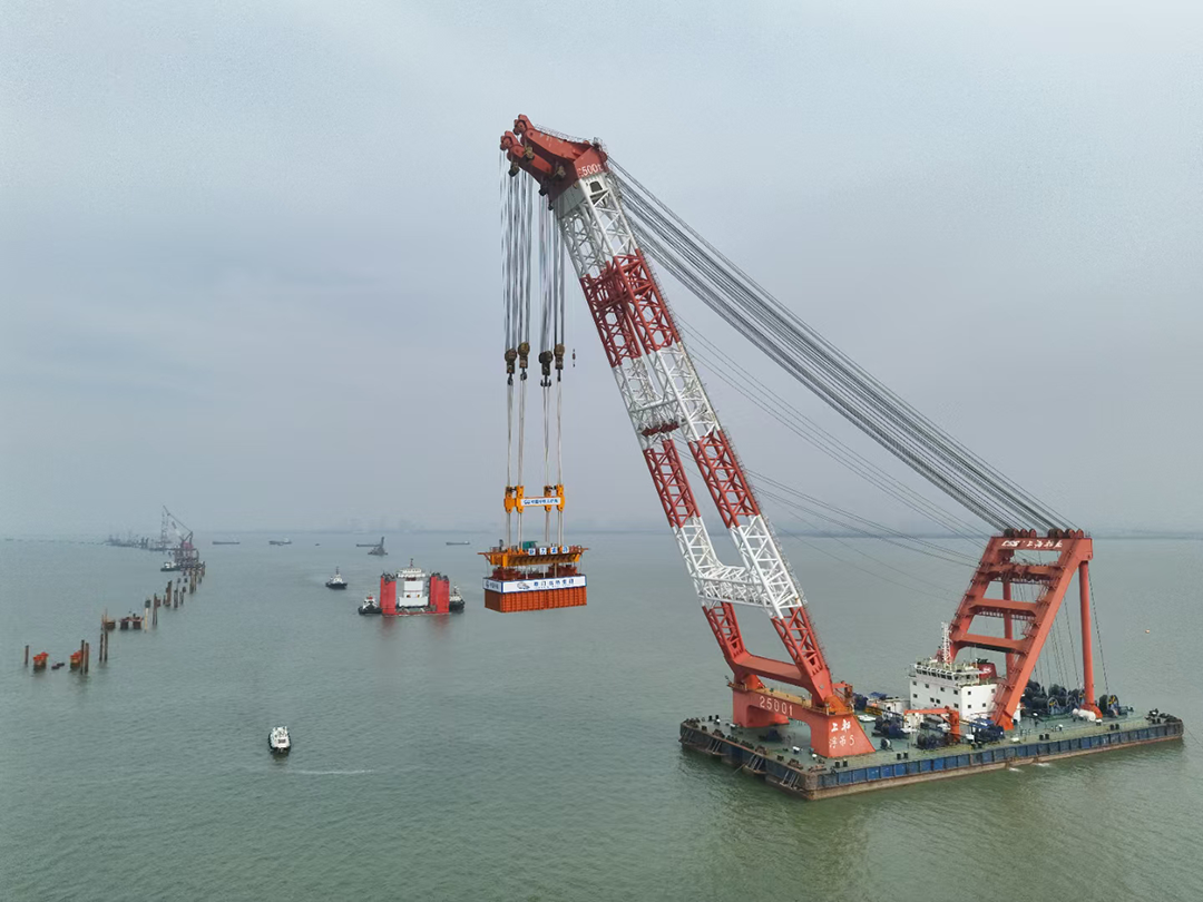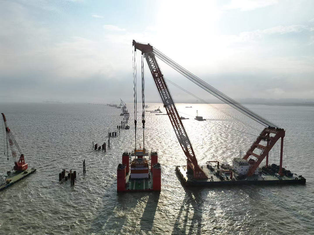 首位五角形预设墩台大获全胜成功出海起重
