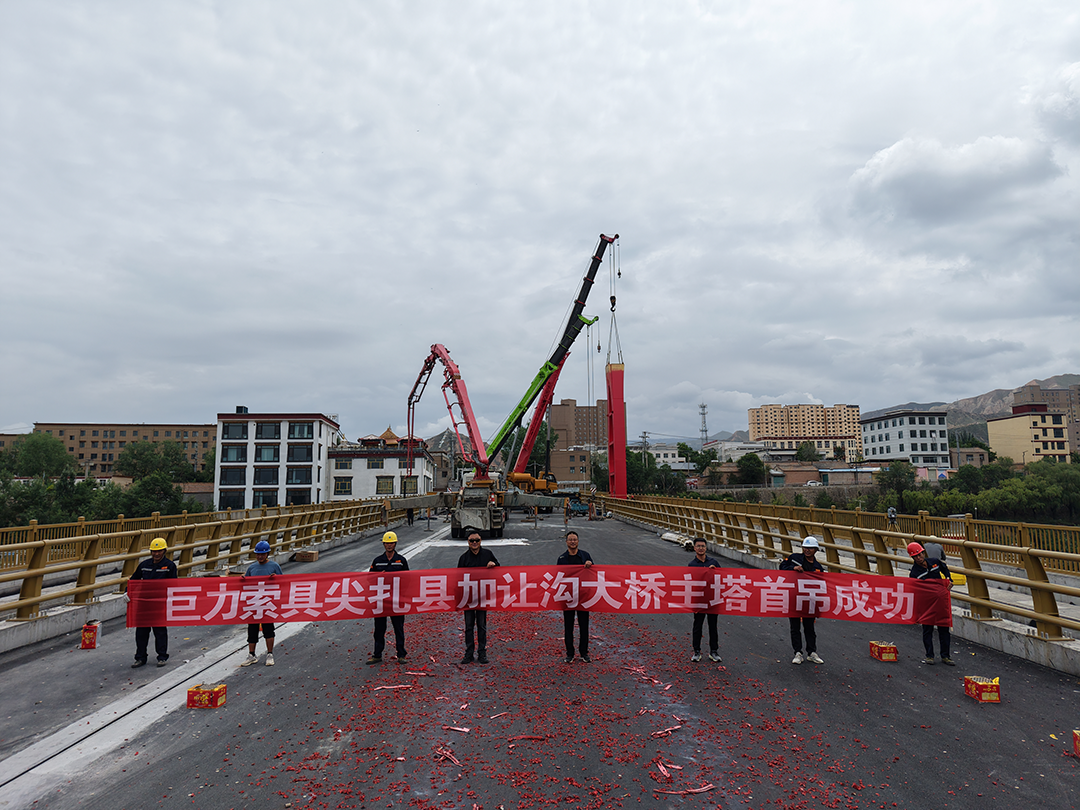 【巨力工程】尖扎县加让沟大桥主塔首吊胜利