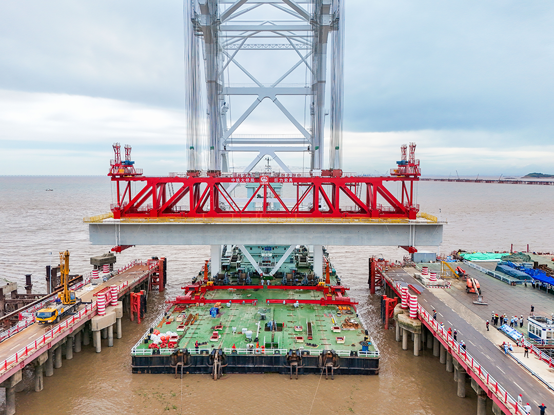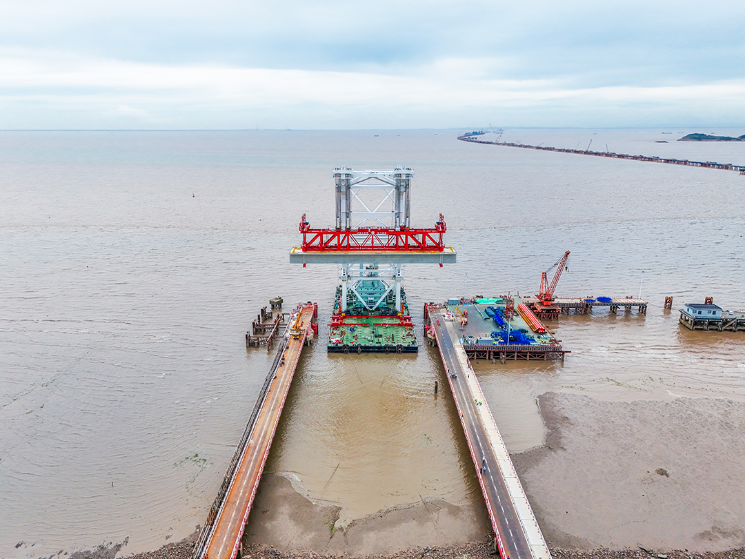 2800吨“天下梁王”!巨力索具助力杭州湾跨海铁路大桥首孔80米箱梁架设到位