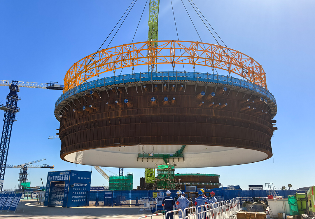 钢布置清静壳钢衬里模组一安安稳稳落位