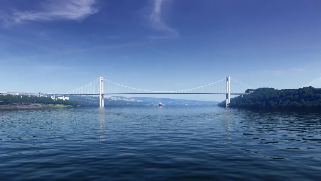 主桥有利于跨590米双塔双索面钢箱梁悬索桥