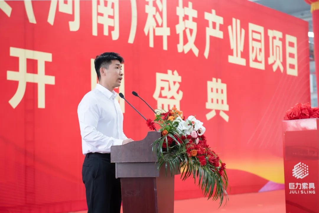 岳益民在开园典礼上致贺辞,对巨力索具(河南)科技财产园的顺遂开园,表现强烈热闹的庆祝。他指出,巨力索具(河南)科技财产园名目,既承载着巨力团体“三十而立、走向天下”的但愿和决定信念,也依靠着40万孟州国民对财产兴市的胡想和情怀。自名目完工以来,孟州市与巨力索具紧密亲密协作、并肩作战,从完工扶植到名目顺遂完工,完成了“孟州情况”与“巨力速率”的完善连系。孟州市将持续秉持重商、亲商、巨贾、安商的理念,信守许诺,自动办事,持续当好“店小二”、做好“办事员”,尽力助推巨力索具在孟州成长强大。