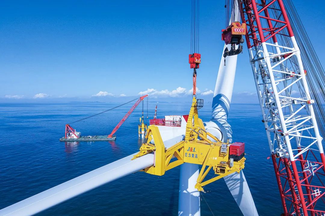 2021年9月,巨力索具研发的国际首台50吨大兆瓦全角度扭转式海上单叶片吊具,方才面世,便在汕头某海疆延续睁开功课,顺遂完成5台风机的叶片吊装,承受住了磨练,完善的展现了巨力吊具的高靠得住性、高宁静性及高效力。