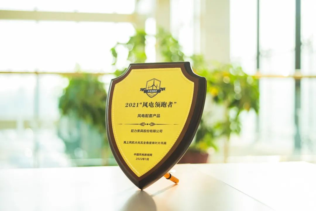 2022年1月8日,由中国风电消息网主理的2021(首届)“风电领跑者”手艺立异服装论坛t.vhao.net暨颁奖盛典在北京胜利进行。巨力索具凭仗“国际首台50吨大兆瓦全角度海上单叶片吊具”荣获2021年度“风电领跑者”最好办事产物声誉称呼。