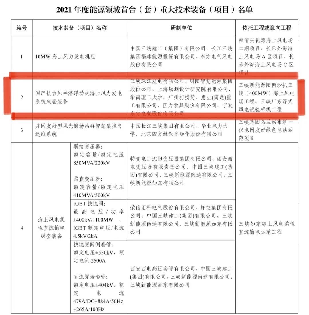 2022年5月13日,国度动力局把巨力索具到场研制的国产抗台风半潜浮动式海上风力发电体系成套设备参加国度首台(套)严重手艺设备(名目)名单。