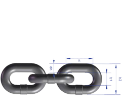 | 链条直径dn | 内长P(mm) | 宽度(mm) | 极限任务载荷(t) | 单元长度分量(kg/m) | 实验负荷(KN) | 最小破断负荷(KN) | 破断负荷下的延长率(%) | |||